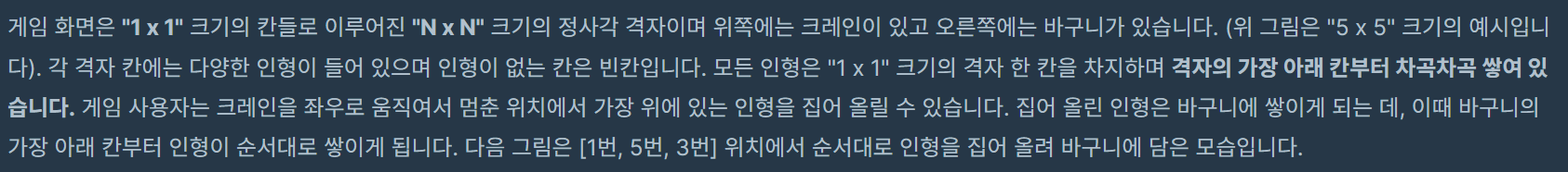 2. moves 갯수만 큼 반복 안에 뽑을 인형의 위치를 찾아 뽑는 과정.