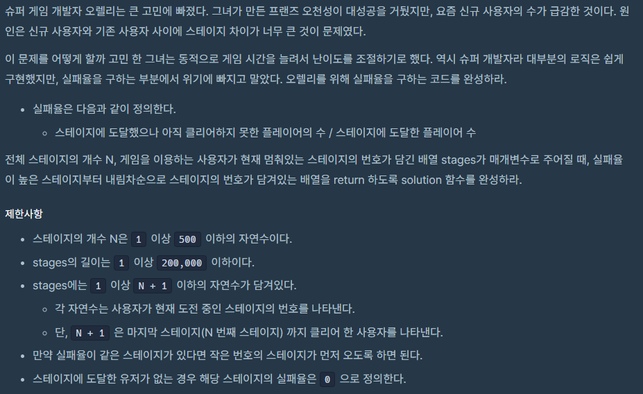 [프로그래머스] 실패율개발공부/코딩테스트 연습문제 2022. 1. 10. 10:27