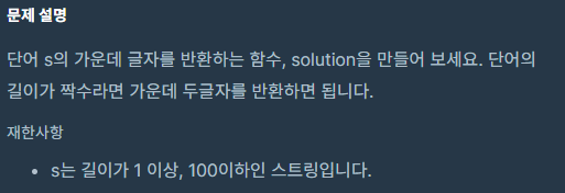 [프로그래머스] 가운데 글자 가져오기