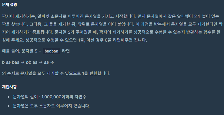 [프로그래머스] Level.2 - 짝지어 제거하기