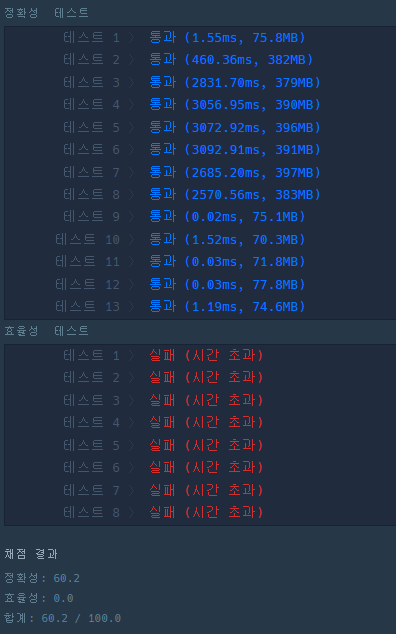 스택으로 풀었을때 성능이다.
